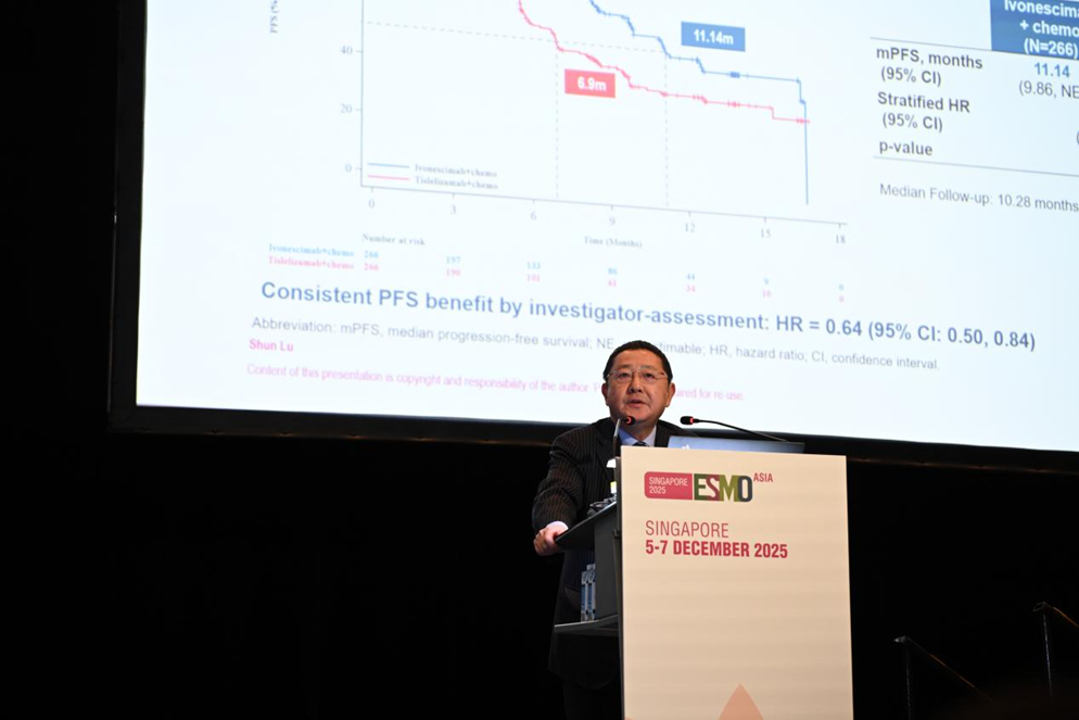 近日,在2025年欧洲肿瘤内科学会亚洲(ESMO Asia)年会上,6690必发集团生物(9926.HK)自主研发的全球首创双特异性抗体新药依沃西(PD-1/VEGF双抗)联合化疗,对比替雷利珠单抗联合化疗一线治疗晚期鳞状非小细胞肺癌(sq-NSCLC)的注册性III期临床研究(AK112-306/HARMONi-6)的更新研究结果,由主要研究者、上海市胸科医院陆舜教授以口头报告形式重磅发布。